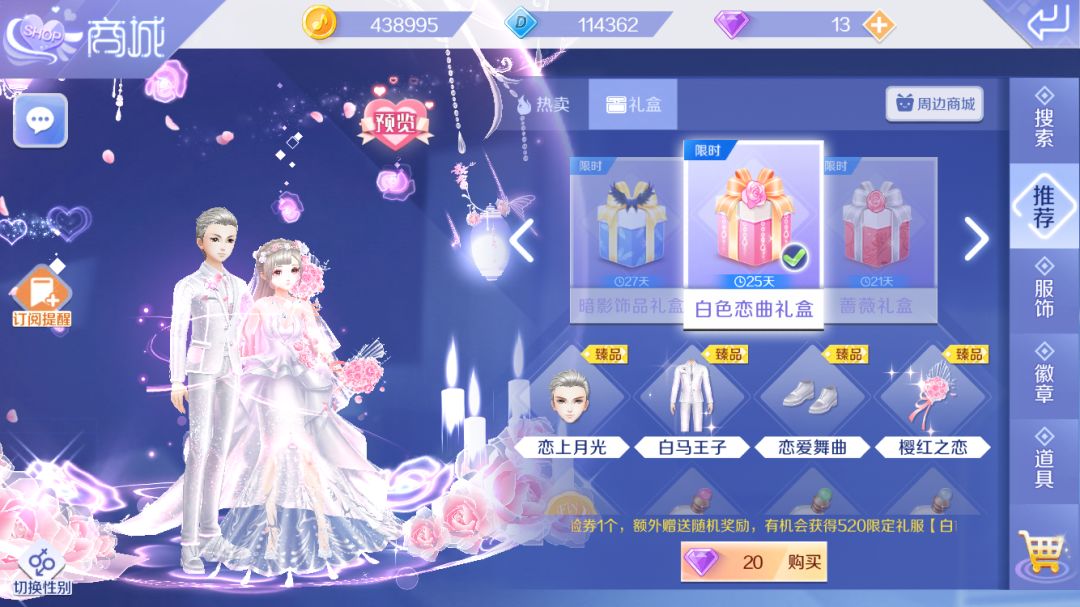 5.20:登录送【臻品白色恋曲礼盒*1+点券*1888】,当天完成任务即可免费在活动-嘉年华获取【520限定】绝版头像框。