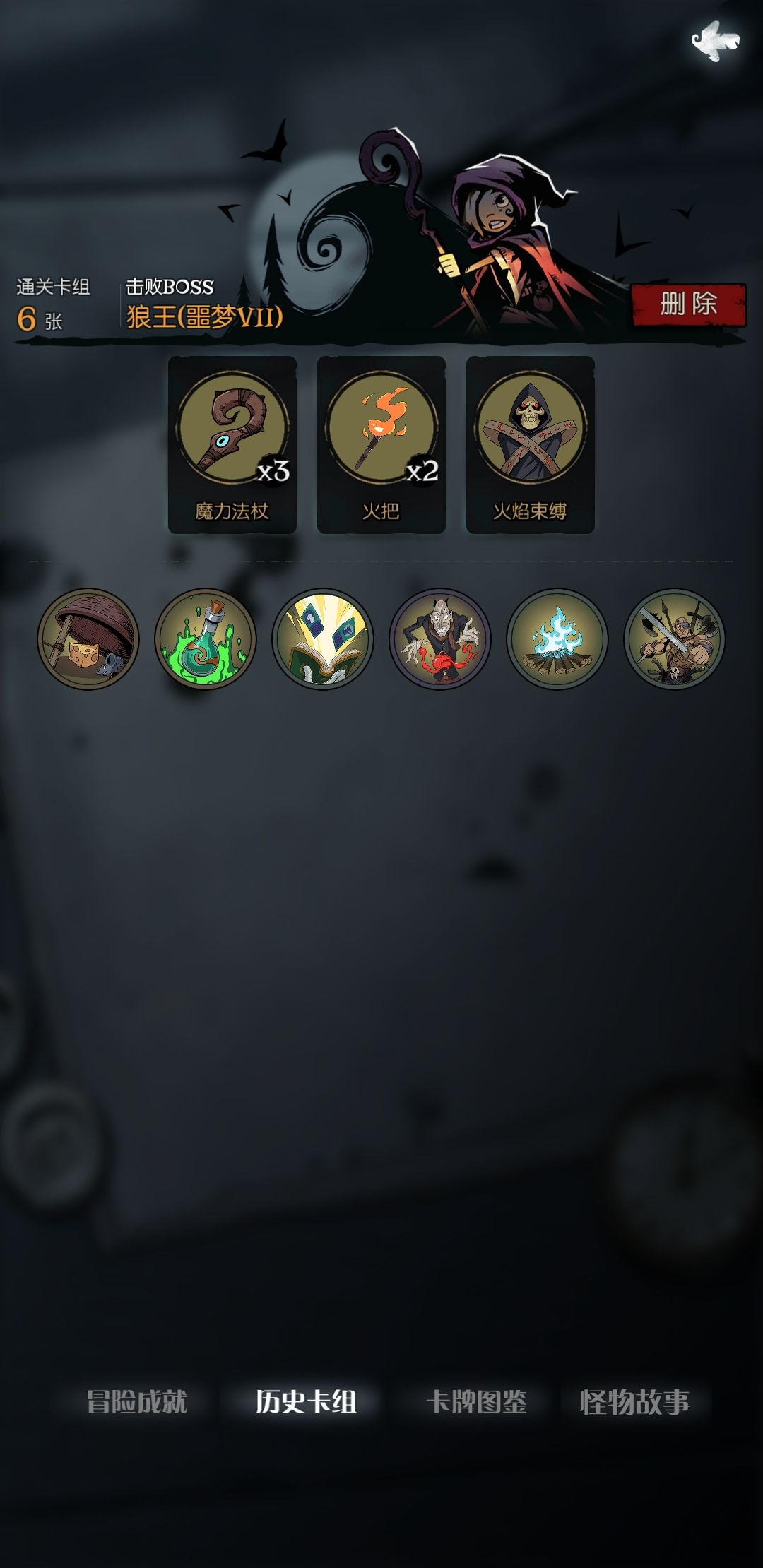 3法杖2火把,初始装2法杖1火把,卡组1法杖1火把1火焰束缚(其实应该幸运星随,不用刷起手)起手全抽手上,手速开技能抽3武器(武器大师洗入卡组),然后全部获得卡召的复制,最终得2+6=8魔力法杖,1+4=5火把