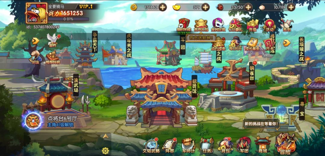 2.之后就是不断的推关,普通副本精英关卡推来推去直到推不动,这里有个和其他卡牌游戏有些不一样的点,有个军师技,也是个资源消耗点,而且结合了游戏的另一种玩法 长坂坡之战,里面的掉落物品就有升级军师技以及突破军师技的材料。最猛的那个军师技似乎还能秒人,反正我还没获得😂。升级军师技可以增加全队属性和技能效果,也是金币消耗的一大缺口