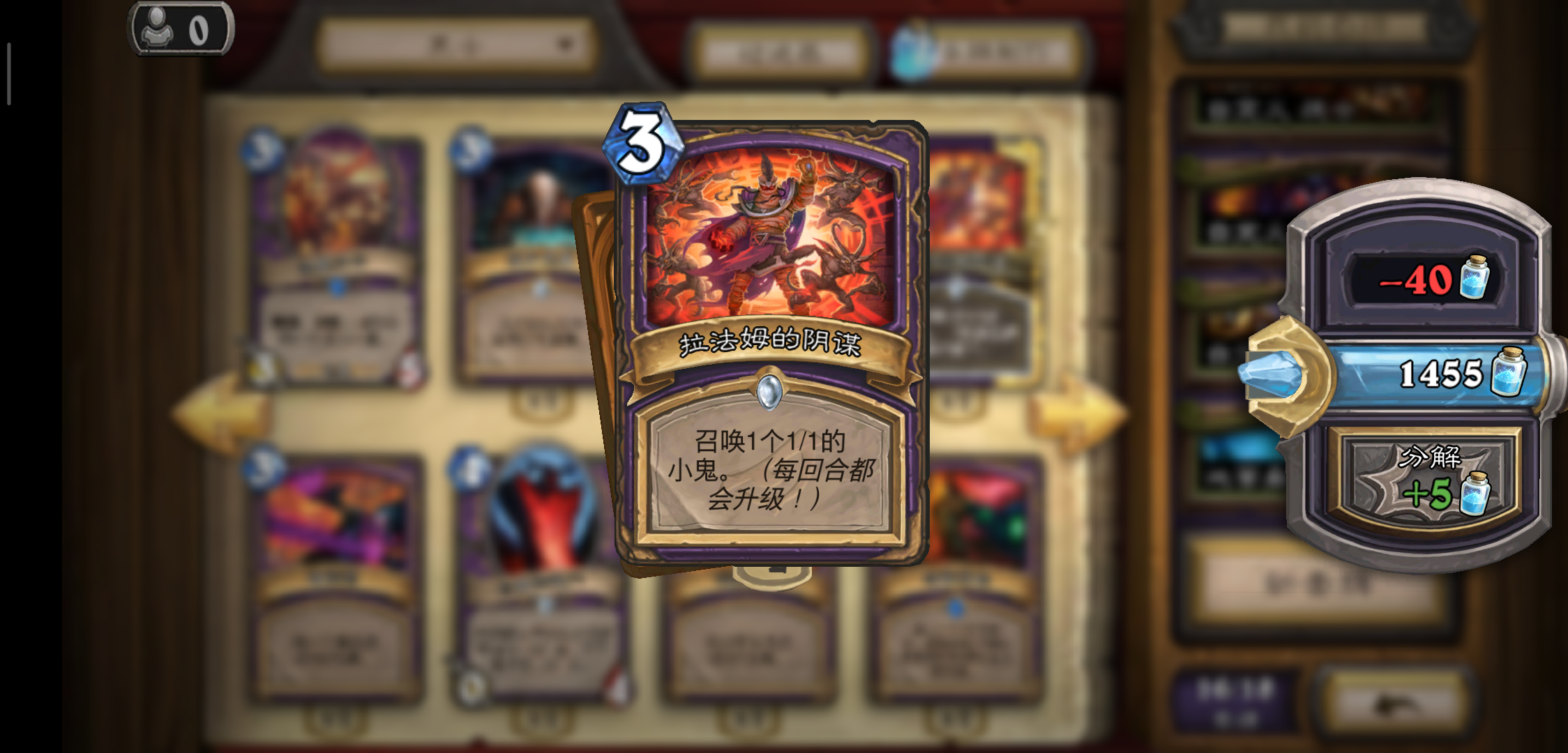 新出的拉法姆说真的,有一点点变态,英雄技能两费,偷对面一张牌(如果是随从就喊出来),我选的宝藏是每回合两张牌,费用减半,不知不觉就过了。。。