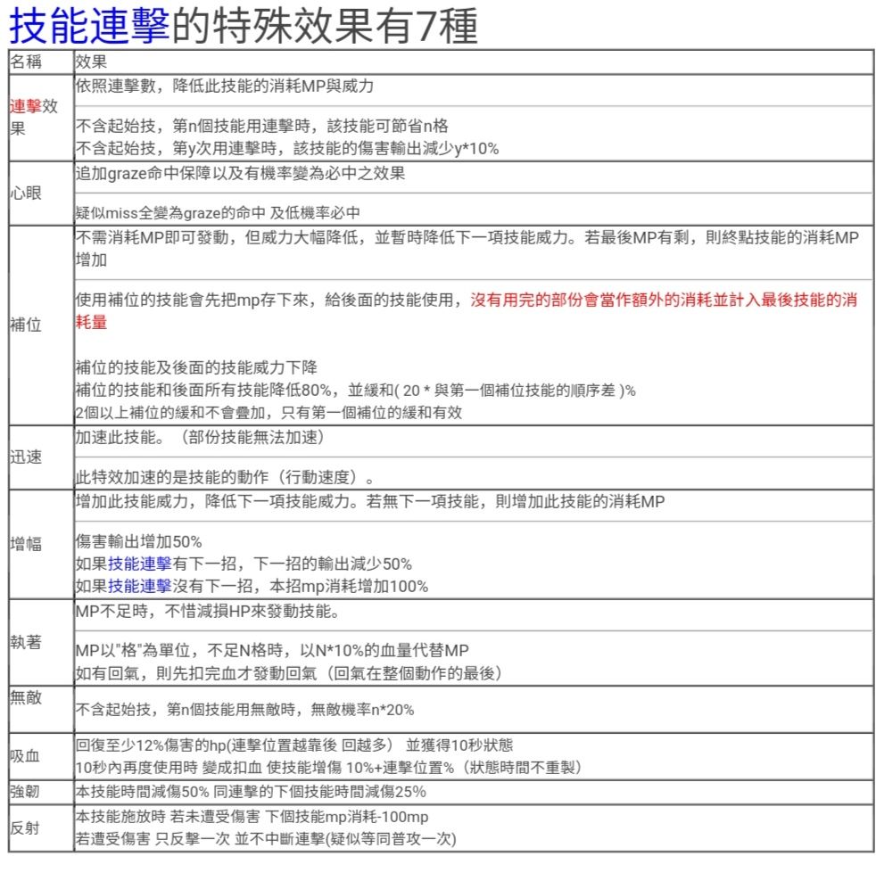 关于连击方面,请大家一定要去这个帖子学习连击的基础知识:https://www.taptap.com/post/44832940。我这里我贴张图让大家了解一下七种连击特效分别有何种效果: