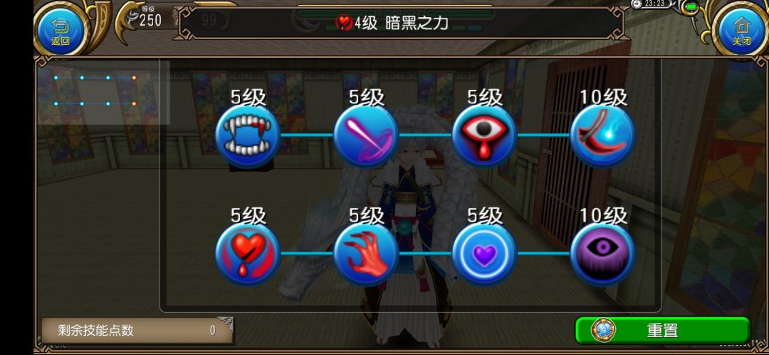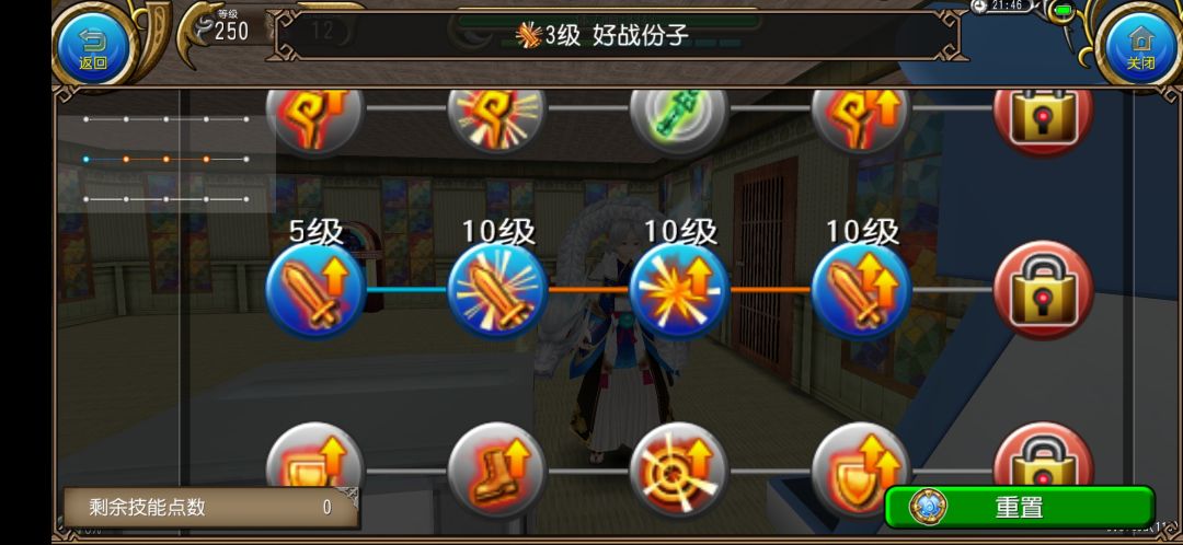 注意!奥义流拔刀已经不再点10级无悔了,因为我们现在学习了【神速掌握】后,已经让自己立于无伤之境,已经不需要用它来回血和提高角色的物魔双抗。