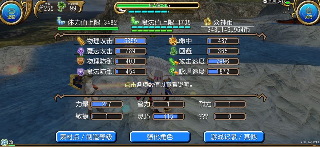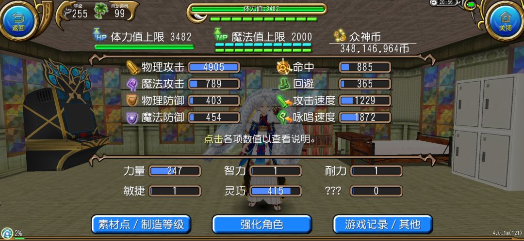 开了怪力、战吼、破风、风遁、三层神速和勇气源泉后的属性面板为: