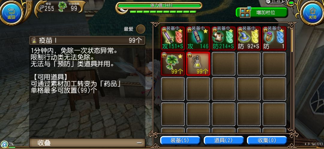 该药品直接去杂货铺买,100众神币一瓶,极其便宜。当我们被挂上了很麻烦的负面时(比如魔力爆发),就该疫苗药剂出手了!