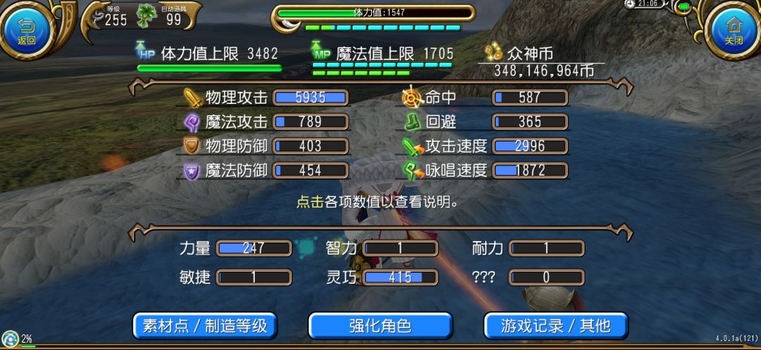 这里给大家看一下我平常吃完5种料理后常态化的属性截图: