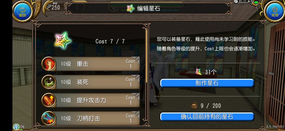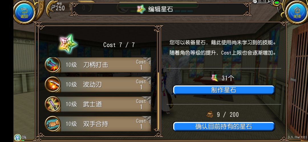 十级武士道:拔刀必备的星石。10级武士道提升HP上限100,MP上限100。主手装备拔刀剑时,同时提升3%Atk,30%武器Atk。