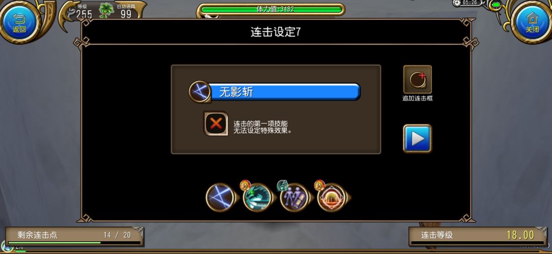 我要特别提一句,我给风遁附加的连击特效是(无敌),这个连击特效的效果是:位于连击第n个位置的技能施放时,有(n-1)×20%的概率在技能动作期间内获得无敌状态。因为风遁是连击第6位,所以风遁·劈甲施放时,动作期间能100%获得无敌。我在忍者技能介绍的帖子里讲过,风遁·劈甲的后摇长达1秒,如果目标没有被翻覆,极有可能对我们造成致命打击,所以给风遁·劈甲加上(无敌)这个连击特效的作用就体现出来了。这样一来,在我们单刷时,只要目标不是翻覆后会变得棘手的类型,那不管目标有无翻覆控反或者是否处于翻覆抵抗状态,这个连击都可以完整施放出来了,因为落地的那1秒后摇我们也是处于无敌状态中,完全不怕受到致命打击。如果你担心风遁·劈甲原本的滞空无敌状态与连击特效的无敌状态因冲突而互相抵消,那我告诉你无需担心,因为经过我的反复测试,已确认连击效果的(无敌)和无敌急救的(无敌),是与技能本身拥有的无敌存在区别的,两者是不同性质的「无敌」,是可以并存的,不会被抵消。