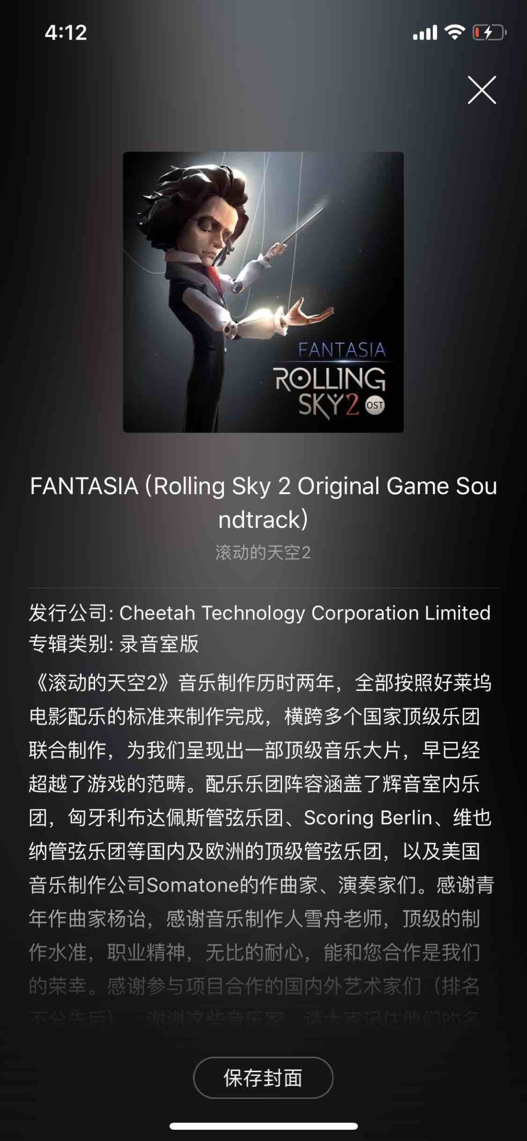 分享Cheetah Mobile的专辑《FANTASIA (Rolling Sky 2 Original Game Soundtrack)》