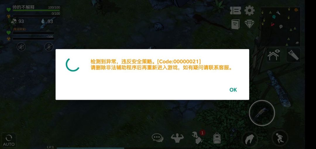 00000021,这个是检测到了手机有辅助类外挂软件,因此禁止运行游戏。比如葫芦侠,烧饼,晃游修改器之类的,如果后台有运行,都会报类似信息。建议关闭甚至删除类似软件后再进行游戏。