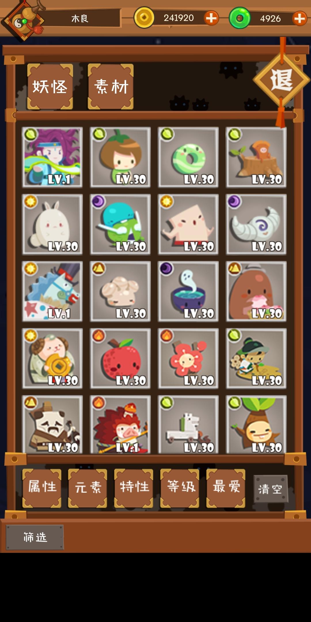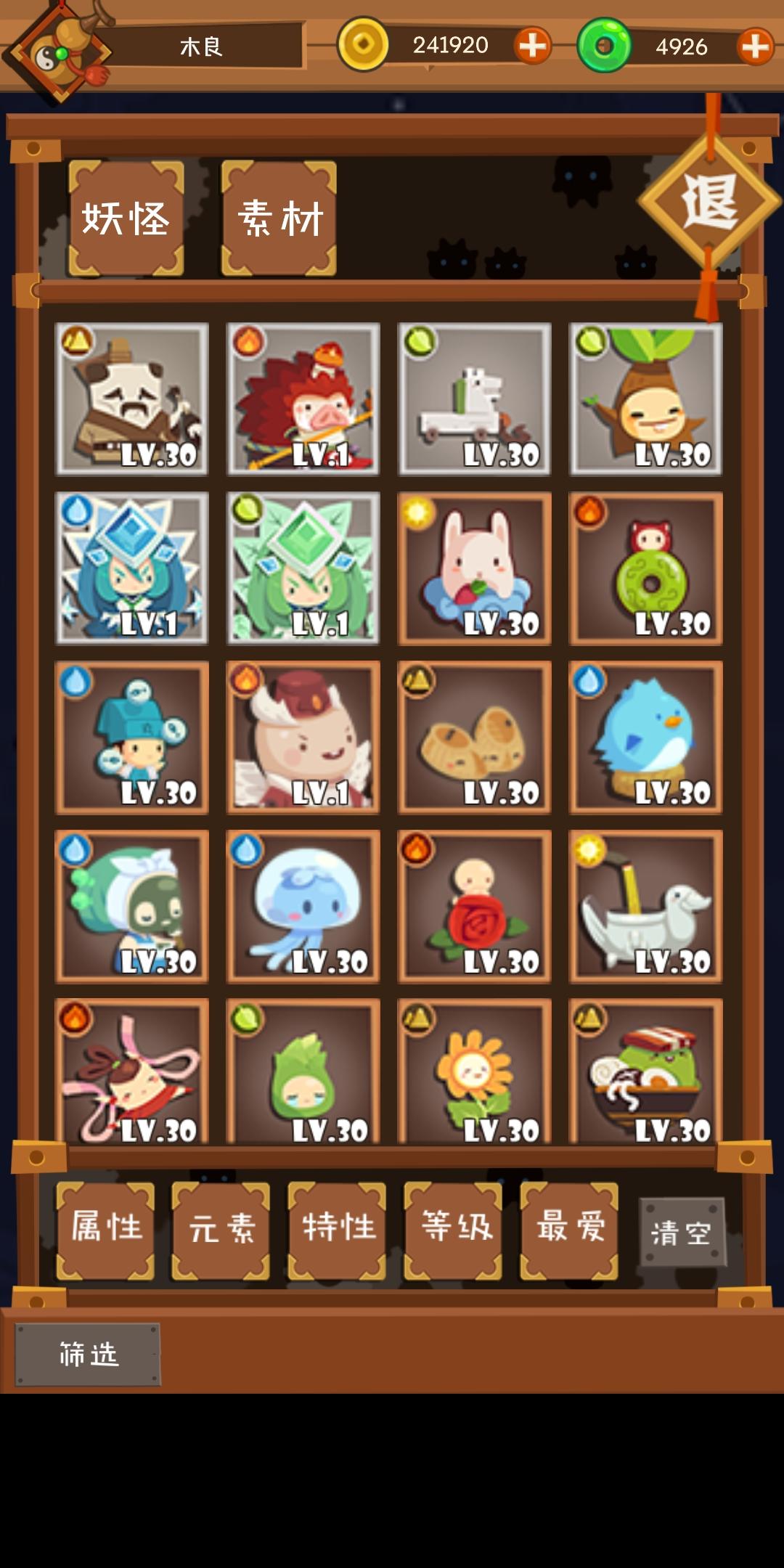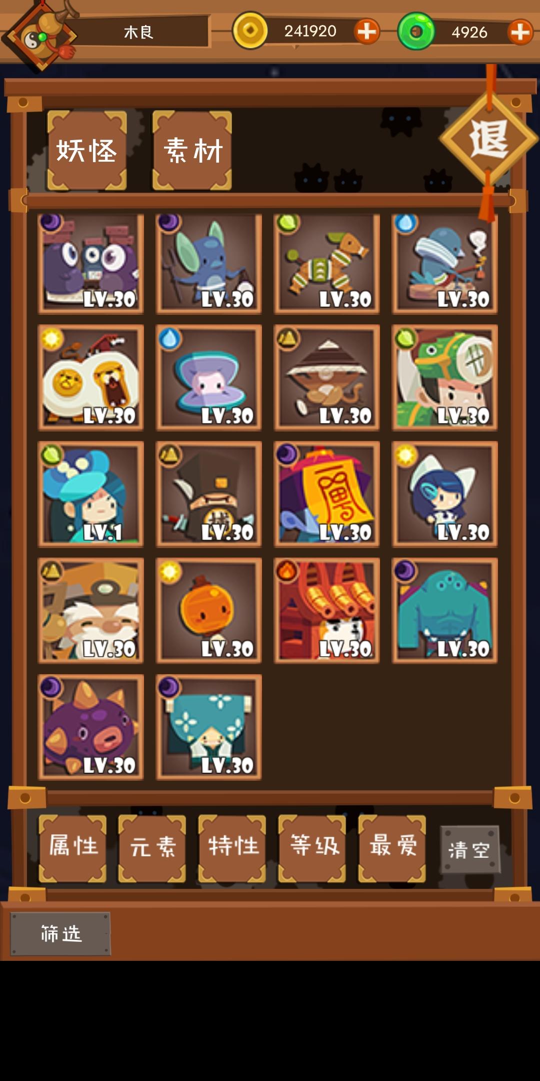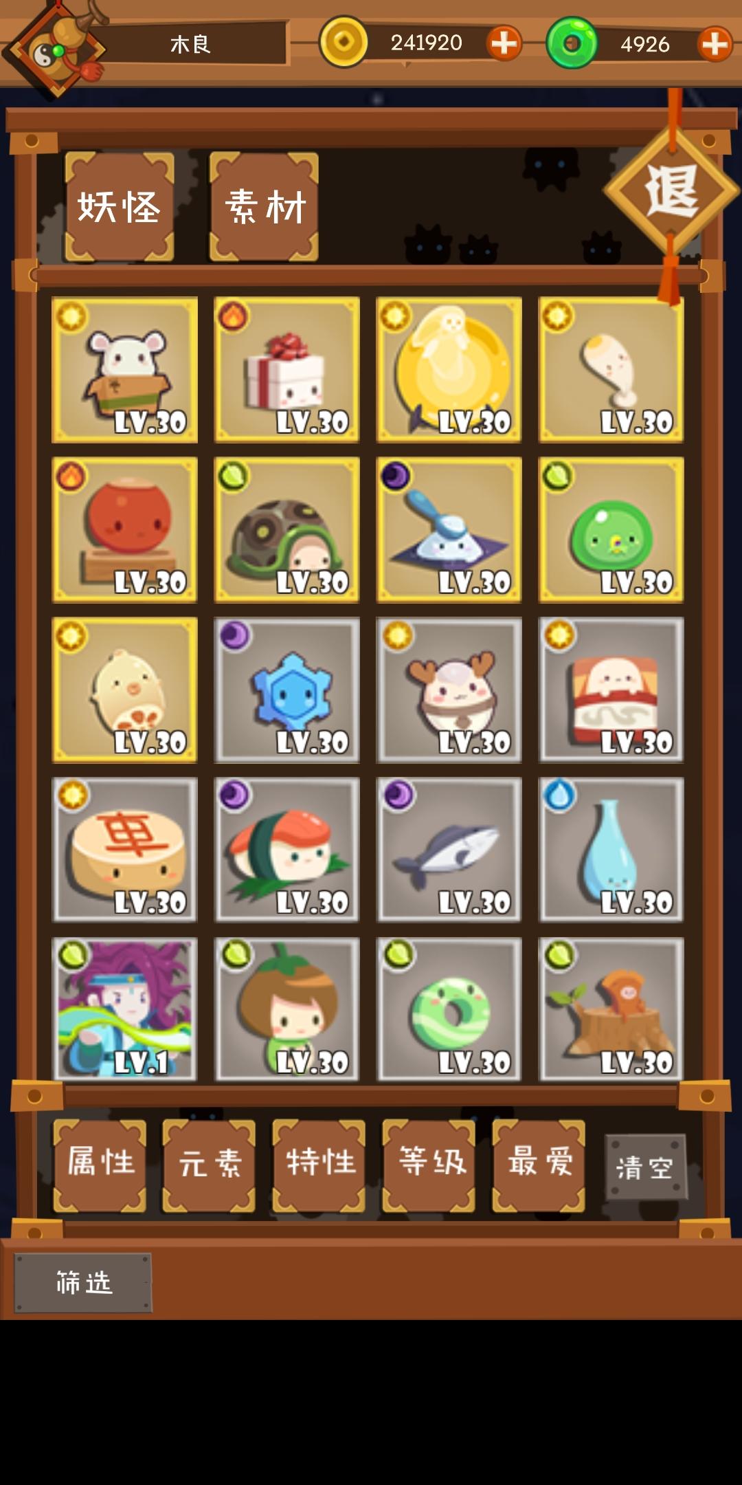 另外,附上现在拥有的妖怪。不想把节奏玩的太快,所以我升级妖怪走的是雨露均沾路线。。