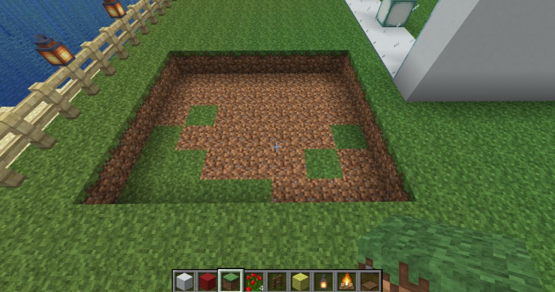 接着我们继续完成其他部分!先在想要放置篮子的位置挖两格~