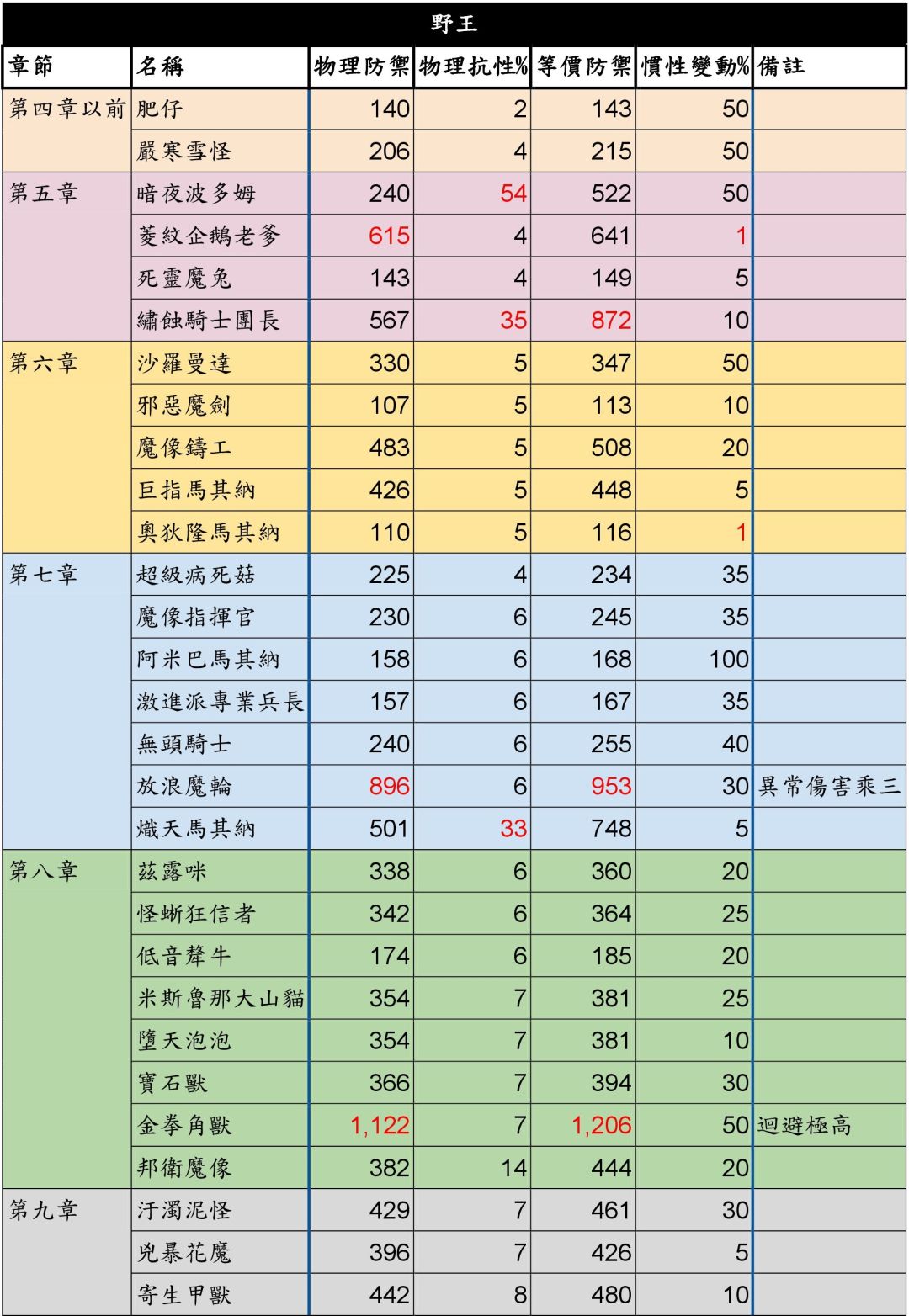 1. 虽然标题打「全BOSS」,但其实只有第五章后是全的,第四章以前的只抓了特定几只来测。