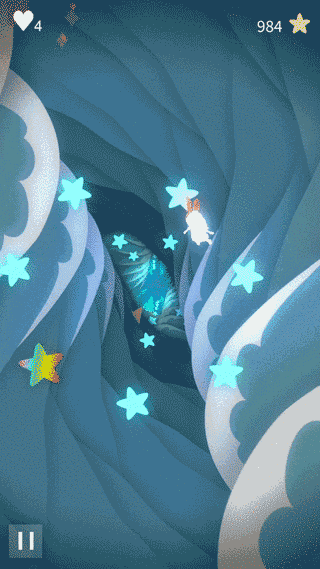 《飞越仙境》讲述一个寻求心灵自由的小故事,Dororhy需要靠不断搜集星星获得前进的能量,一旦能量耗尽主角就会后退,而没有及时再补充能量则游戏失败。