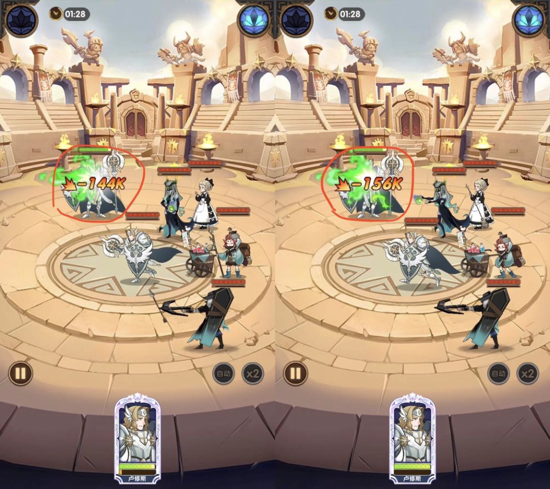 前后分别为光盾有无号角的情况 相差8%的魔法减伤率 156k*0.92=143.52k