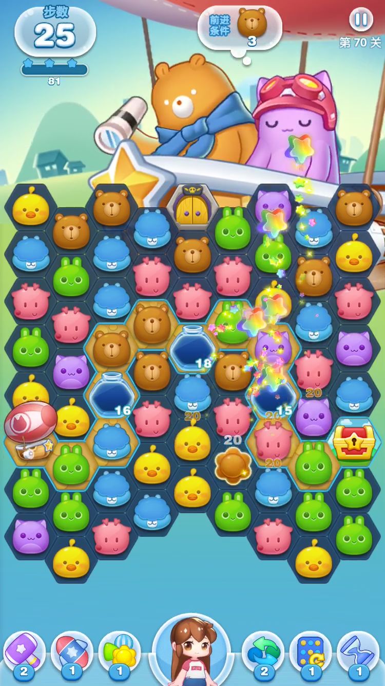 星星罐在关卡中往往是整个地图的核心位置。想要尽快收集并让星星罐消失,就需要掌握一定的技巧。首先就是尽可能多的在星星罐旁边进行消除。这种情况下,太阳炸弹、三角炸弹优势比较大,另外炸弹组合也是一个不错的选择。