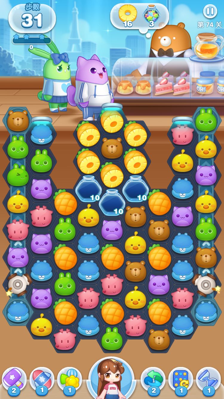 星星罐还有一个特性:同一个棋子只能够进入一个星星罐。也就是说,如果一个棋子挨着两个星星,当这颗棋子被消除后,只有其中一个星星罐会计数,另外一个毫无影响。这是星星罐的特性,也是符合生活常识的。因此小伙伴们遇到这种情况,千万不要认为是系统出错哟!