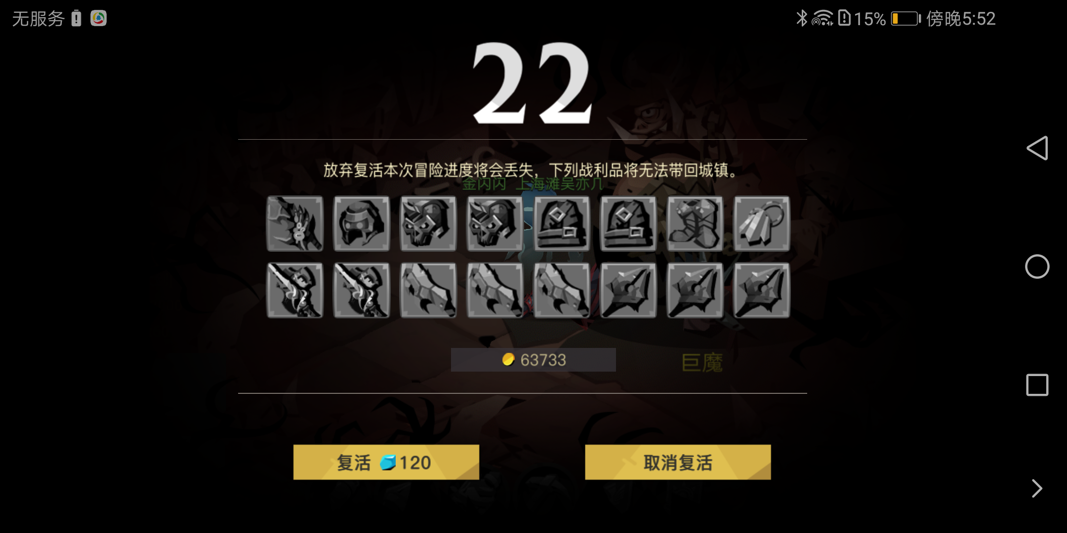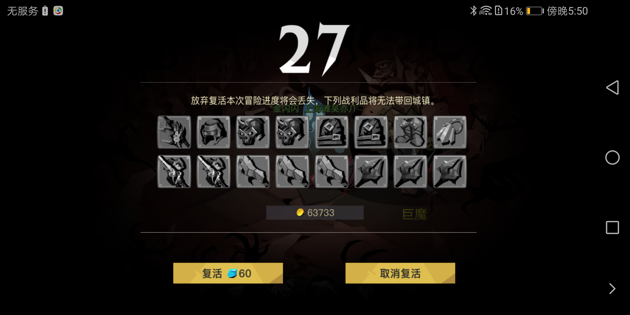 (因为不太稳定,又不想花60钻复活,所以打的次数不多,一般boss前回城。调整报复前大概4到5次,死亡2次)