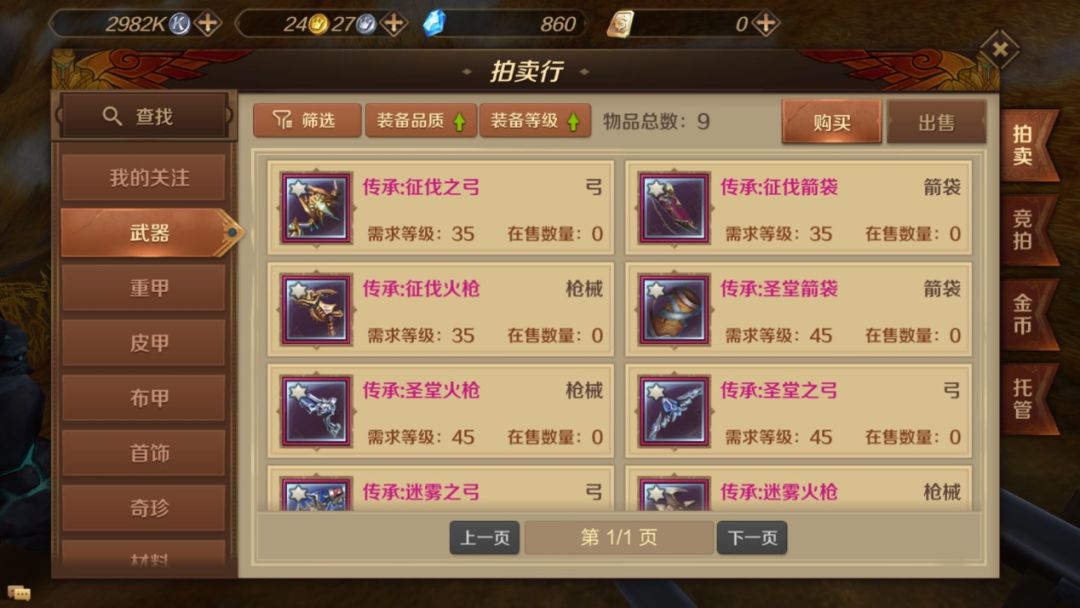 系统默认交易行中只显示和我们职业配套的装备,比如我的职业是射手,那么搜皮甲能看到装备,但是点重甲就什么都没有。游戏这样的设计是为了防止新手玩家错买了自己不需要的装备,毕竟金币在前期可是稀罕物,这里不得不说设计组还是很贴心的。