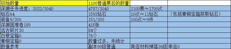 深渊票产出数量:每日爆率300+(在线掉落36级) 商店300+(刷新至20万)