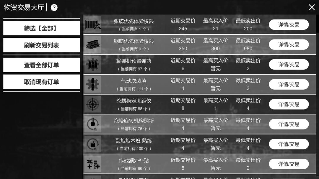 7.修复了交易大厅张缆、钢筋可以在没有足够道具的时候挂单问题。