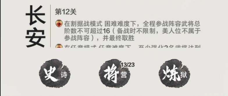 总结一下,打不过你就升兵营,使用大型羁绊,拿不到你就精简将营,卡刷新率(提高或者缩减民心之类的),或者选择合适的难度、模式。