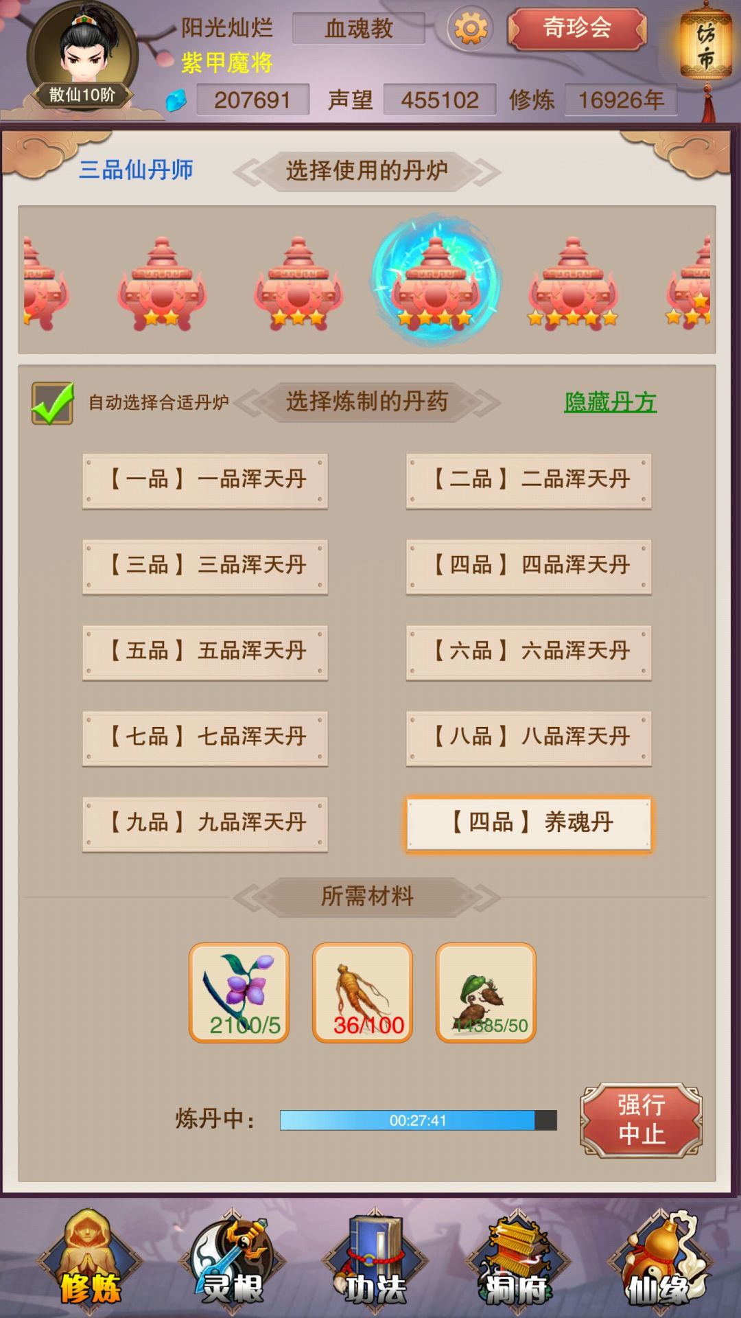 查看丹方时,我有个惊人的发现,原来凡品一到九品的浑天丹我已经集齐了!