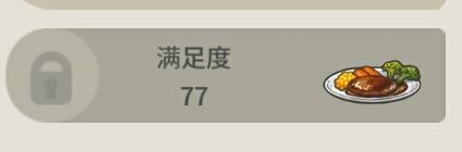 ☆解答——如图,你可以看到在满足度的旁边有一道菜,也就是说在达到77%后,还需要老爷爷再吃一次这道菜才可以继续提升满足度。