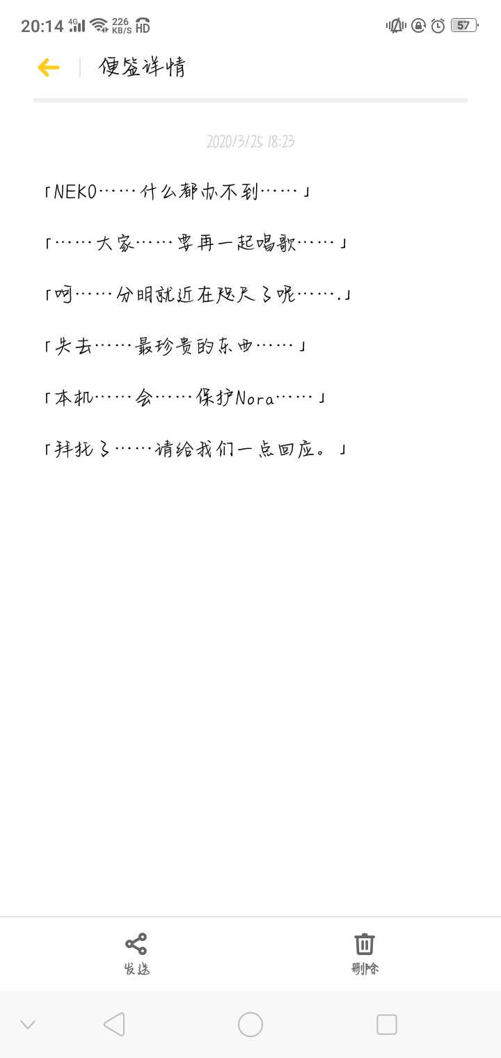 感觉跟结局有些出入,三个结局无论是哪个都没有出现只有NEKO幸存的结局,Xenon的“失去最珍贵的东西”指的又是什么?是亲手杀了Cherry的残像还是什么?还有官方发的一系列话除了“大家要再一起唱歌”和“请给我们一点回应”之外貌似都没在剧情中出现(我看漏了?)说吧,啥时候填坑?还是故意为了刀玩家而发的