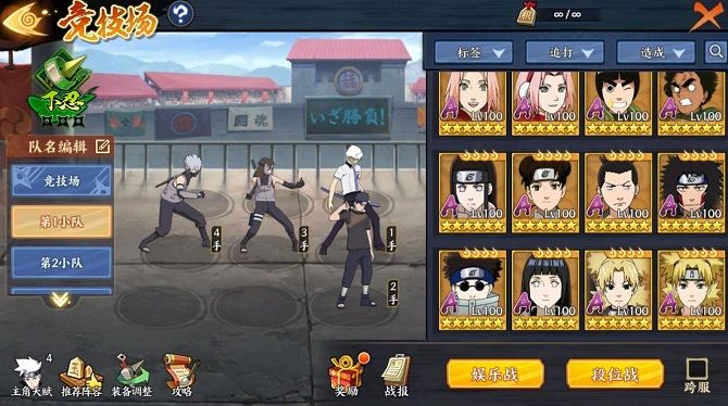 土主止水队:土主奥义带土岩轻增加普攻和查克拉套装与暗部大和形成双解(土主奥义在上个版本加强了驱散全部不良状态)对战时待暗部大和增加查克拉后选择奥义加盾,同时也是为了骗取对手打断,或者止水直接开奥义控对面关键人物,然后土主开奥义,首回合暗部卡卡西3次普工的伤害可不是开玩笑的。这套缺点是竞技场没有饰品加成会大打折扣,实战还是非常好用的