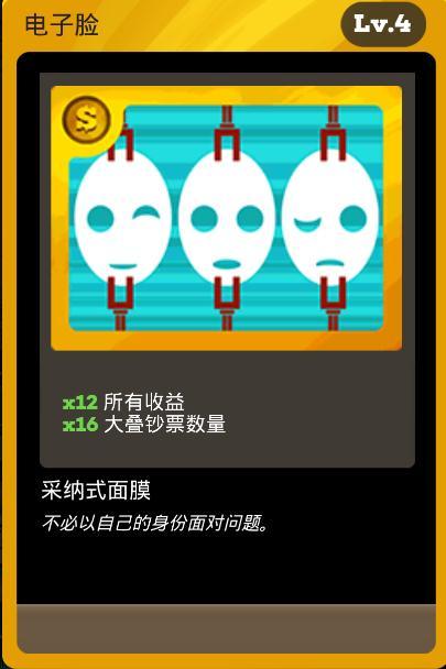 先说建筑收益,一定时间的接触后,相信各位都能发现自己会有一个建筑收益特别高,一般是餐馆,银行,媒体。其中餐馆依靠等级优势,银行依靠自身基数大 ,而媒体100级左右开始会有大量项目 。我们都知道这游戏的收益是按乘法计算的,所以与他们有关的金卡都是值得考虑的。 一般金卡大低都是所有收益两倍的效率。而假设银行为主力,那么一张有银行的金卡,比如口香糖,那么它的收益就是2*2就是四倍,这大概就是一张普通金卡能提高最大效率(领袖卡只有第一张效果拔群,叠加后只相当于两倍)