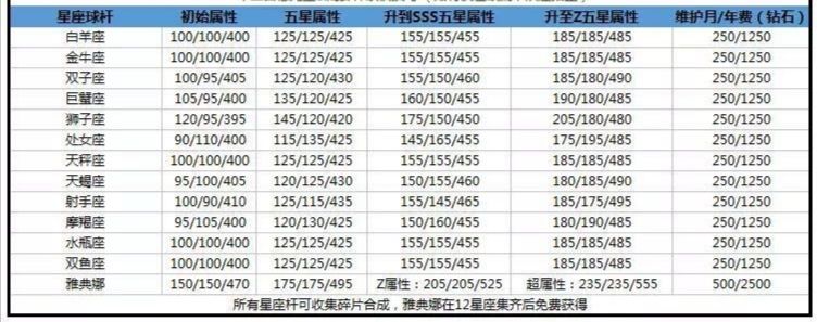 【帝国装备篇】硬货(三)·星座球杆属性数据、升级汇总·