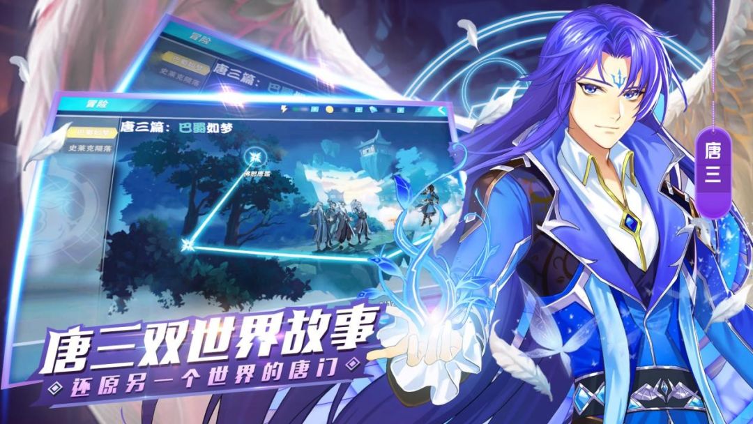 游戏对斗罗系列作品前三部曲进行了角色复盘。传灵塔、圣灵教、战神殿各势力均有出场,唐三、霍雨浩、唐舞麟三代魂师齐聚一堂。海神阁往届阁主、历代史莱克七怪、大神圈各位传奇天神亦粉墨登场。大有来头的反派boss、实力不可预估的魂兽异类亦将复归,与魂师同场竞技。