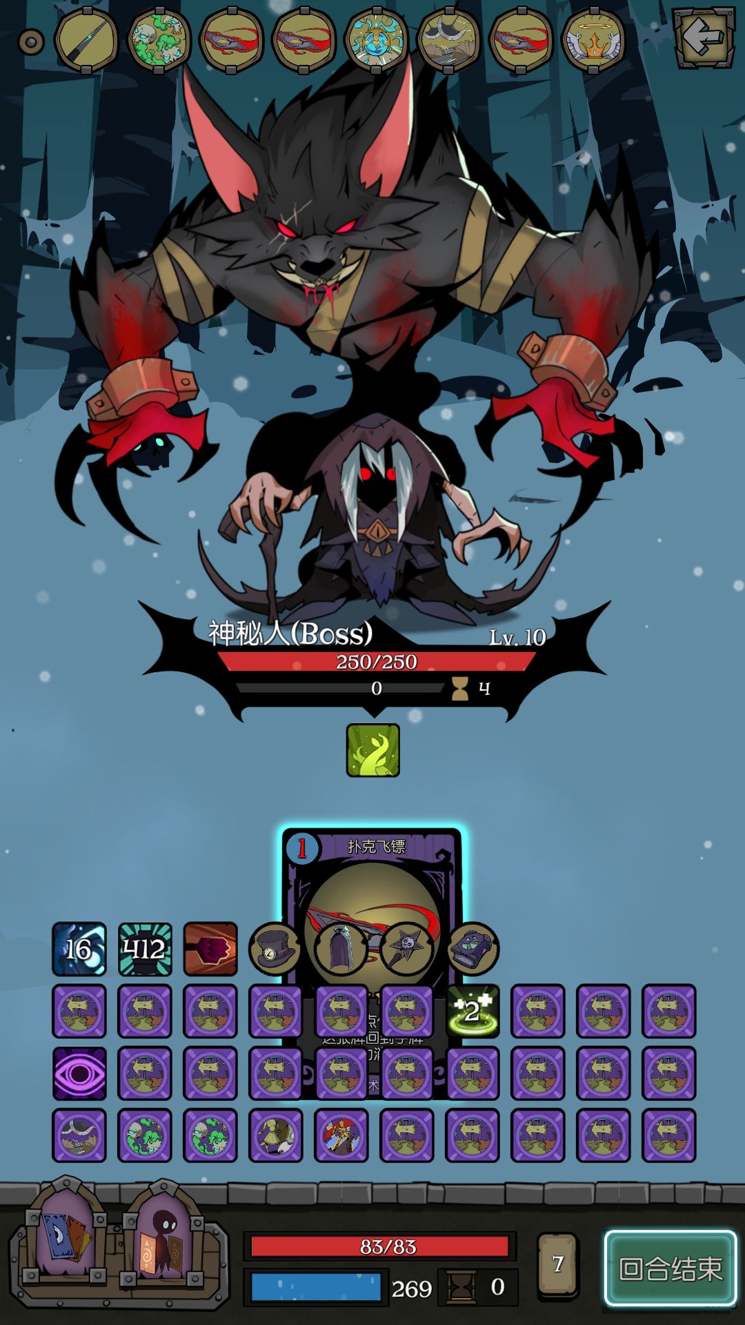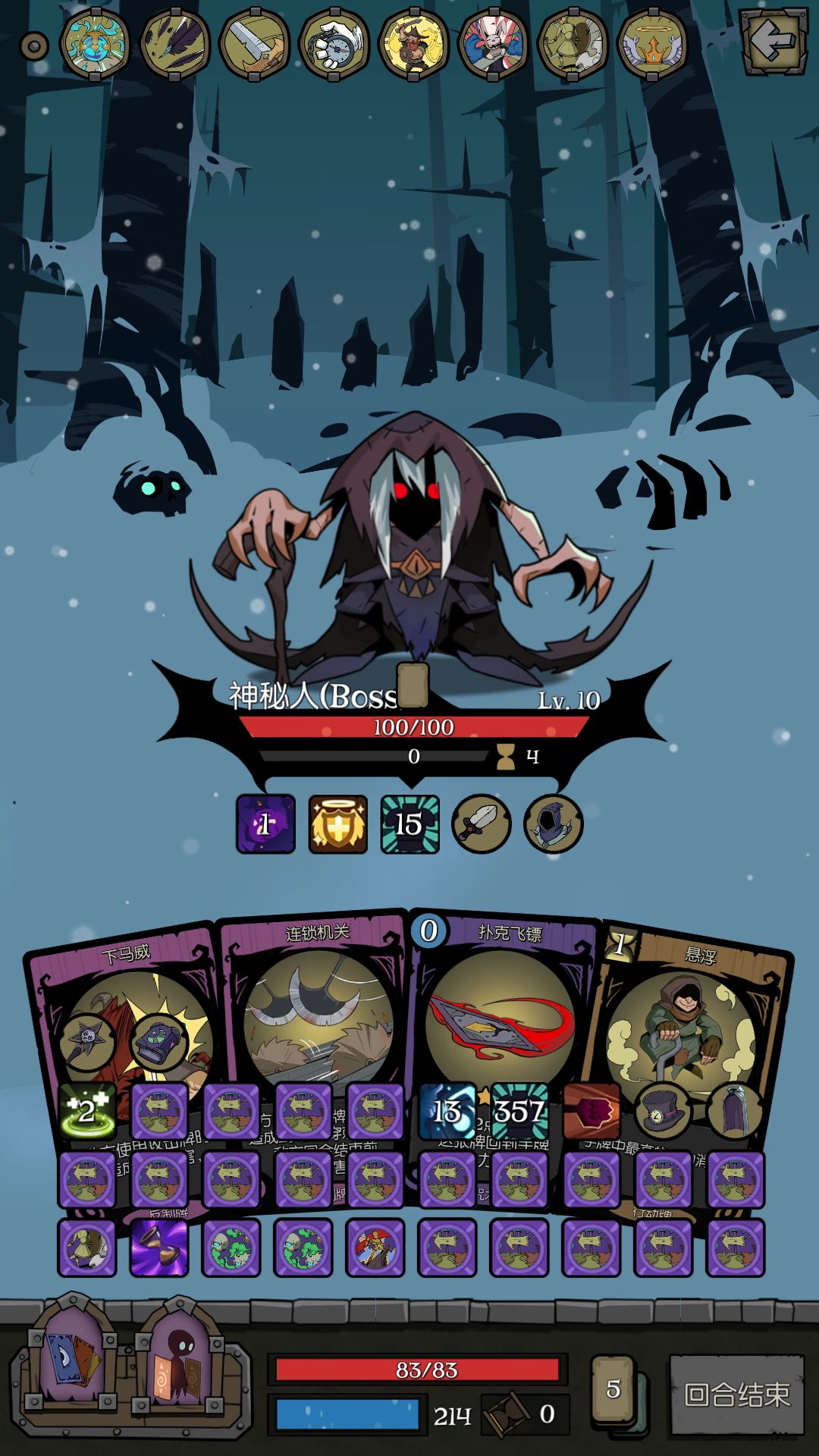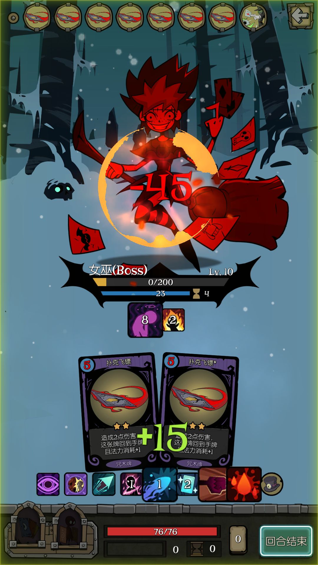 因为我没拿故意没拿伤害牌,就一张扑克牌,只有每回合20张扑克牌扔死boss。