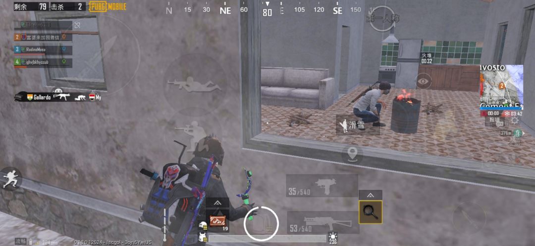这里就要判断烤火的是人机还是真人,当靠近火源大50米时,火源上面就显示剩余时间,剩余时间在一分十秒以下,有90%的几率是人机,超过两分钟的必定是真人,因为真人大多数是放两分钟以上的火。来到窗边卡个视角,再次确定是不是人机,好了,该近战武器的近战,手枪的手枪,喷子的喷子。假如是真人的话,看你自己的操做了,喷子在房区优势很大,所以也不用怂,或者冲锋枪,也是近战神器。