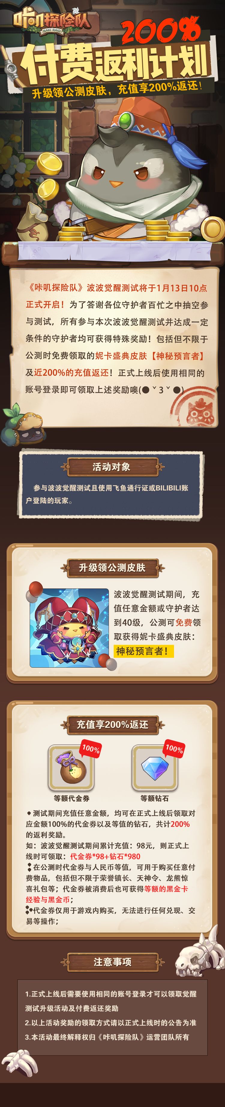 波波觉醒付费返利计划| 充值享200%返还!升级送公测皮肤!