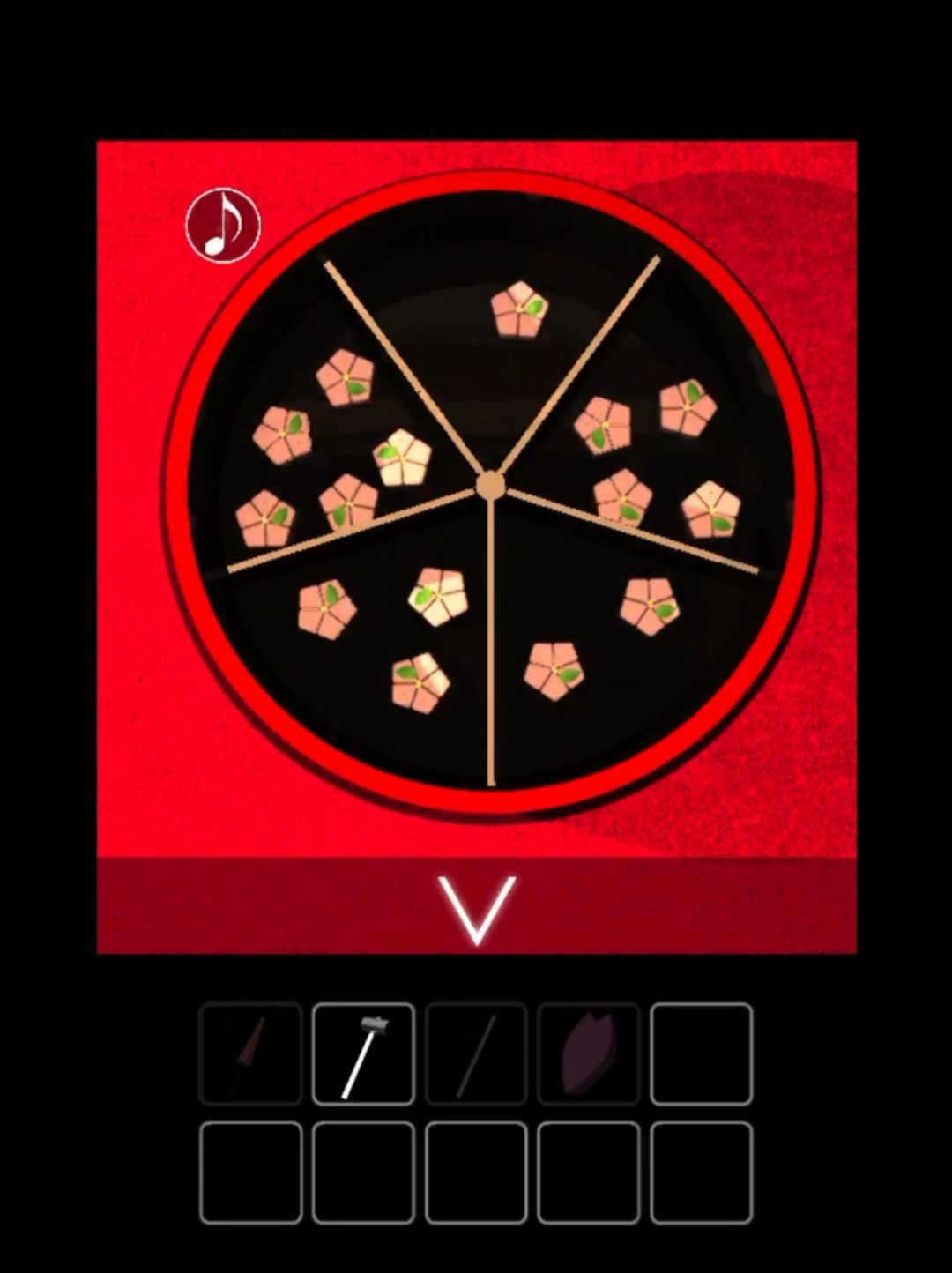 8.回到这里,装入花瓣,观察第7步的圆盒,按圆盒小花数量点击花瓣(圆盒内一颗花为第一下,两颗为第二下,以此类推)