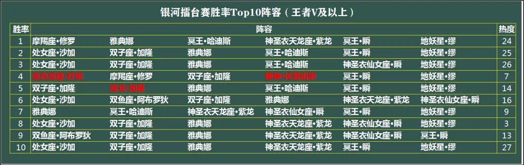 银河经典阵容TOP10丨双子加隆热度不减,冥王哈迪斯再度出山