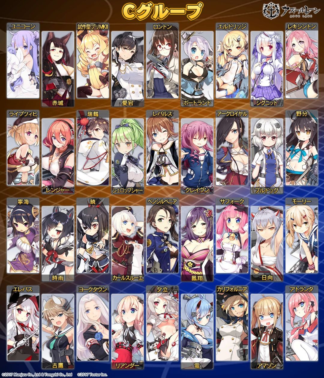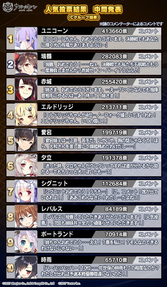 C组:独角兽,瑞鹤,赤城。
