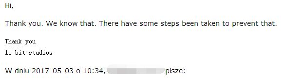 新增补充:【这是我的战争】制作公司11 bit studios回复了我发给他们关于抄袭的截图