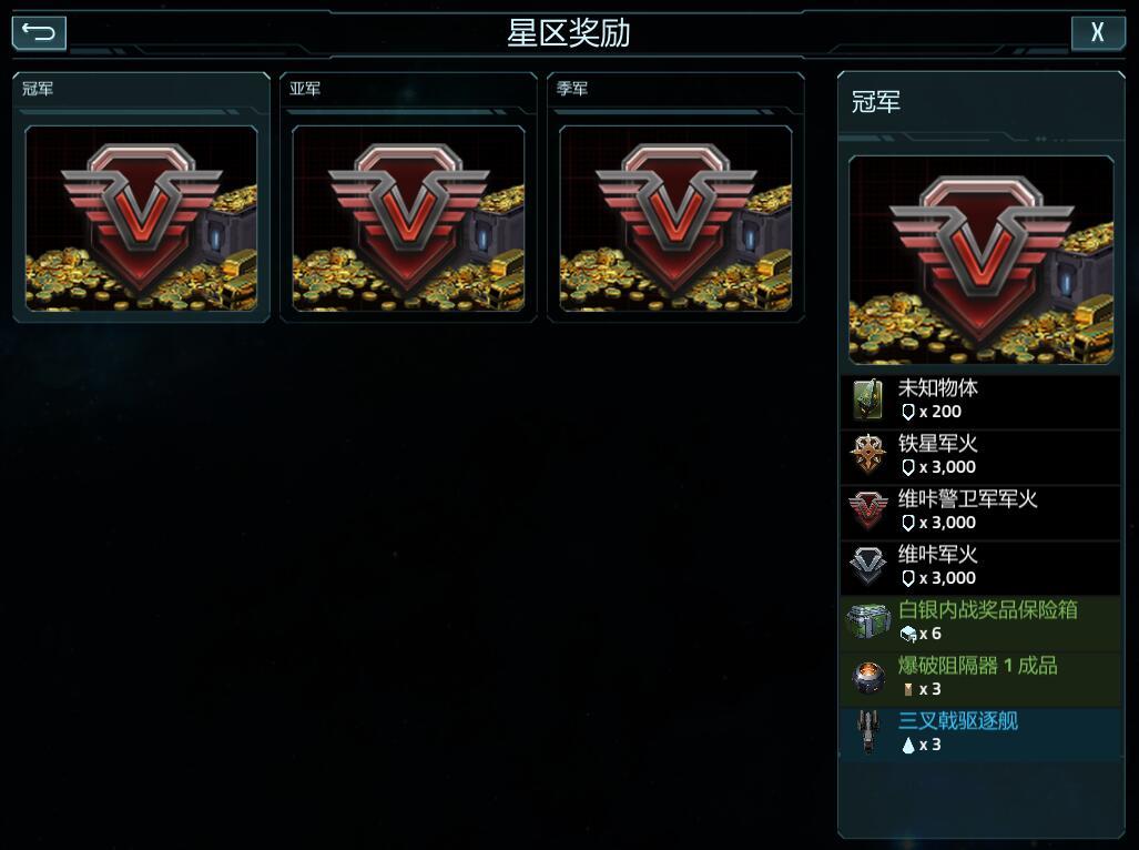 星区奖励:冠军、亚军、季军。