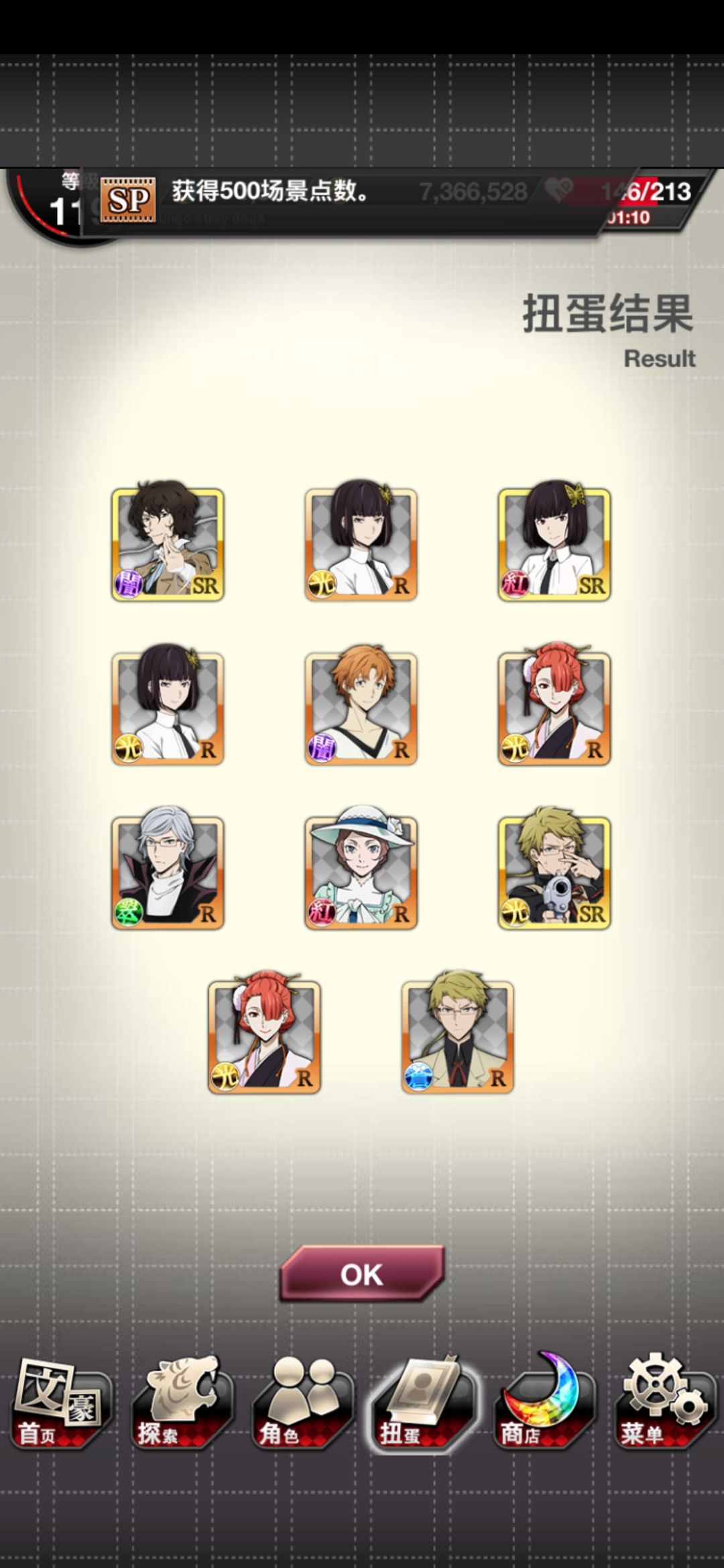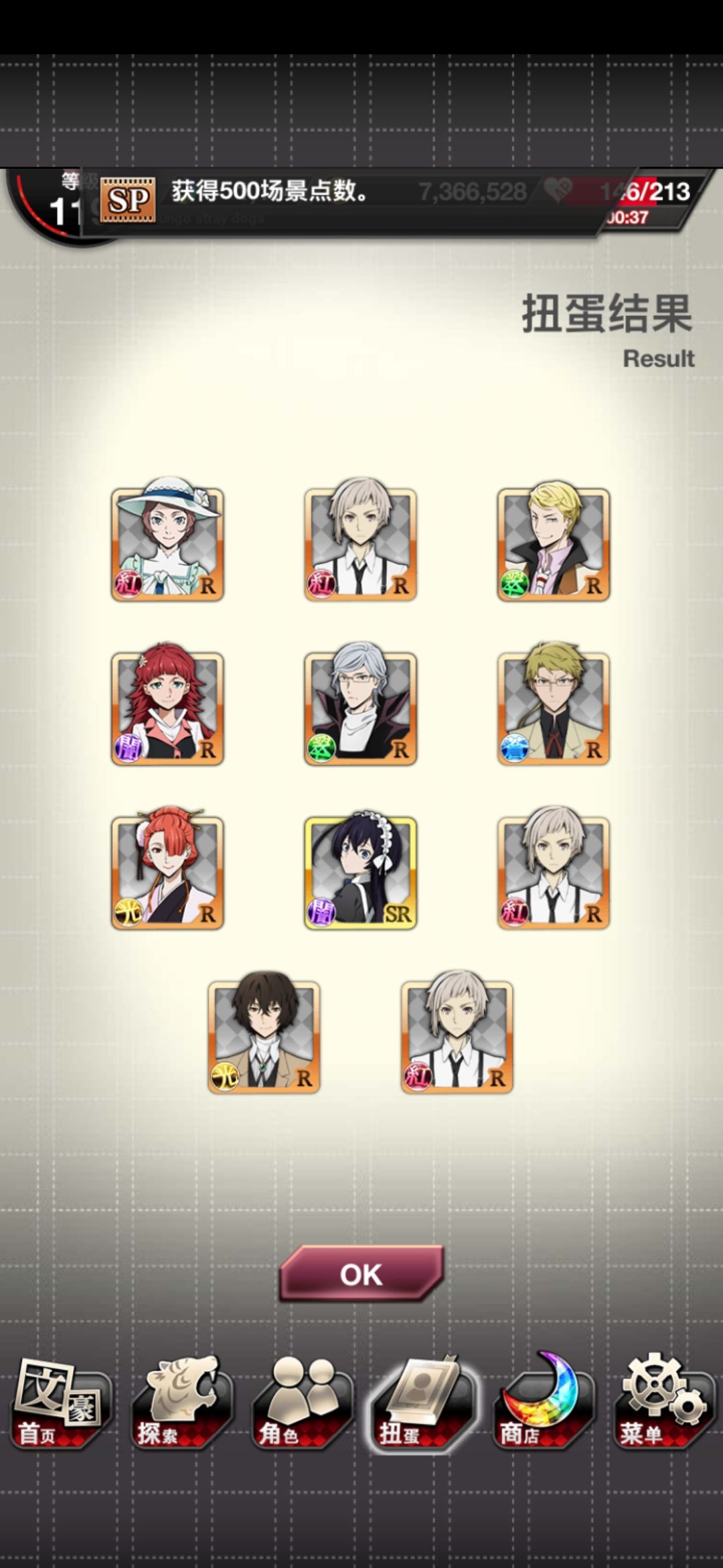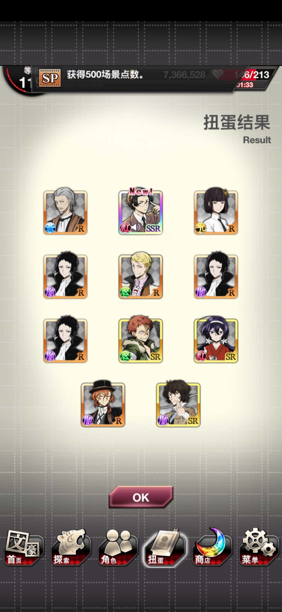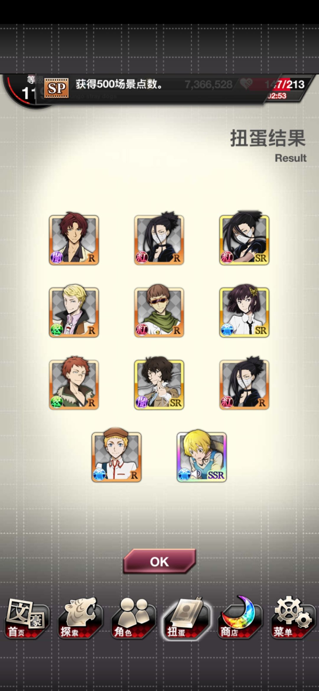 心痛,看到三人同行图去抽卡,追忆宰S5抽完了,就只有一个新的SSR普卡安吾,没有宰,呜呜呜π_π。