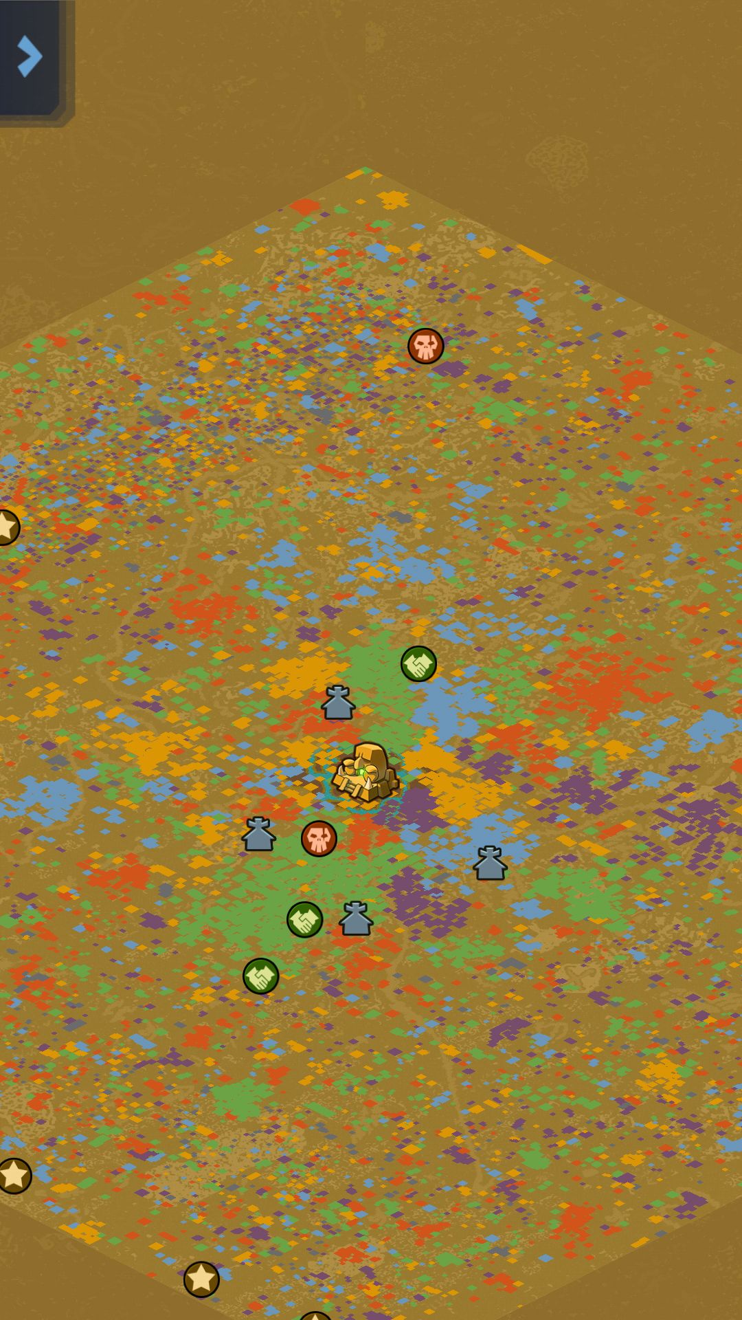 这是我的据点分布,这样分布在遗迹四个方位,形成四角之势,细心的人可能会发现我的正好都在绿色与其他颜色的聚集地交界处(我是绿色部落),即可以在本部落采集又可以侵略别的部落,对于发展很舒服。