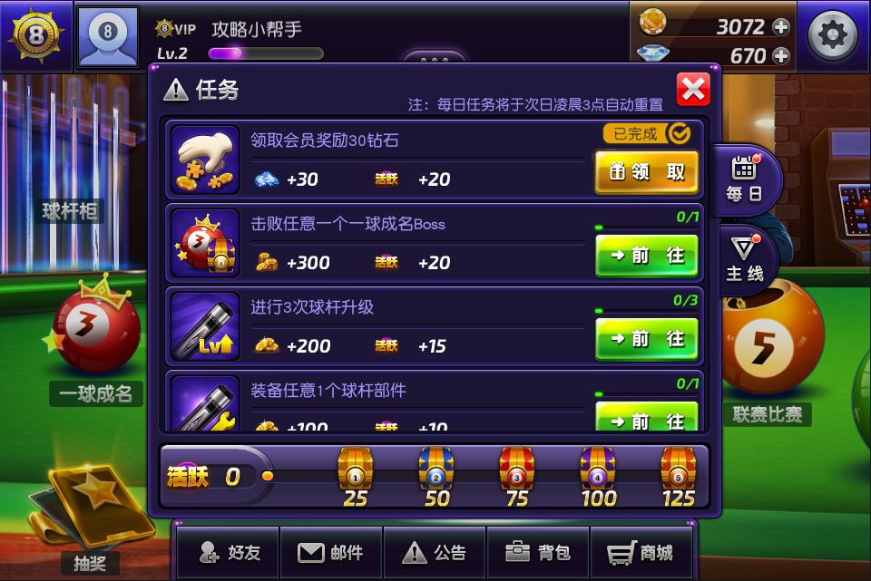 俱乐部任务奖励