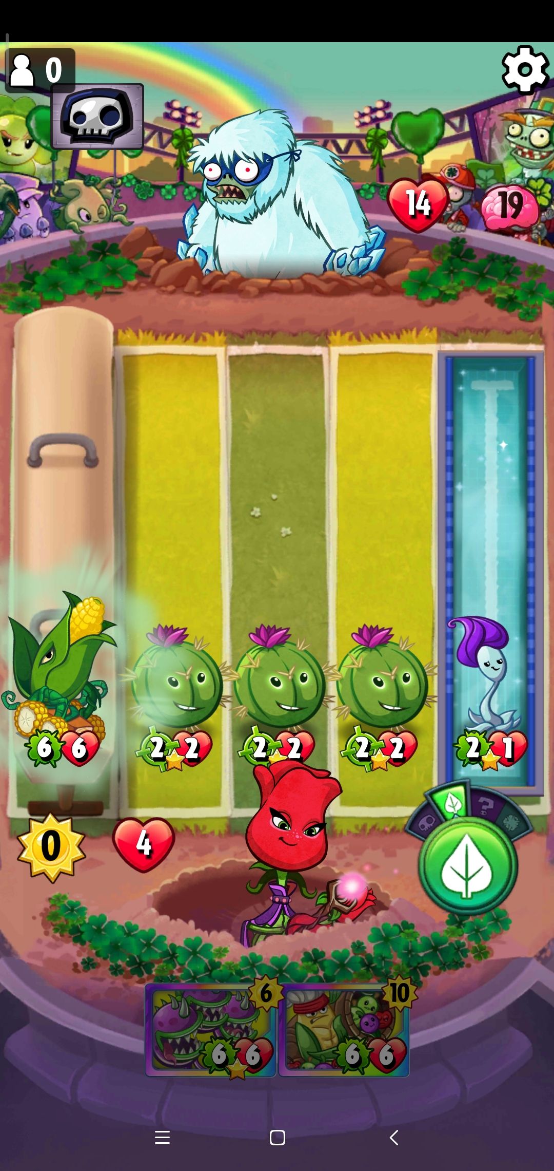 玉米投手1,黄油砸4,玉米加农炮放投手上,玉米加农炮消灭5,两个紫罗兰放2,剩下两个水包收掉4。