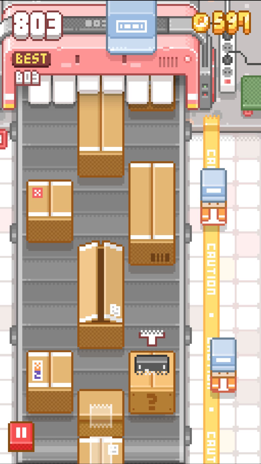 在《贴贴乐》中我们将操纵一个胶带在充满箱子的工厂里进行封装,游戏操作十分简单,只需单手滑动即可,碰到长箱子可多次点击得分,游戏的fever模式也可以快速刷分,所以在进行游戏的时候不要忘了收集字母,游戏中可以收集超过40种以上的角色,还有怀旧系列的胶带搭配像素风让我们回忆童年,而且每一个角色都有对应的背景主题。