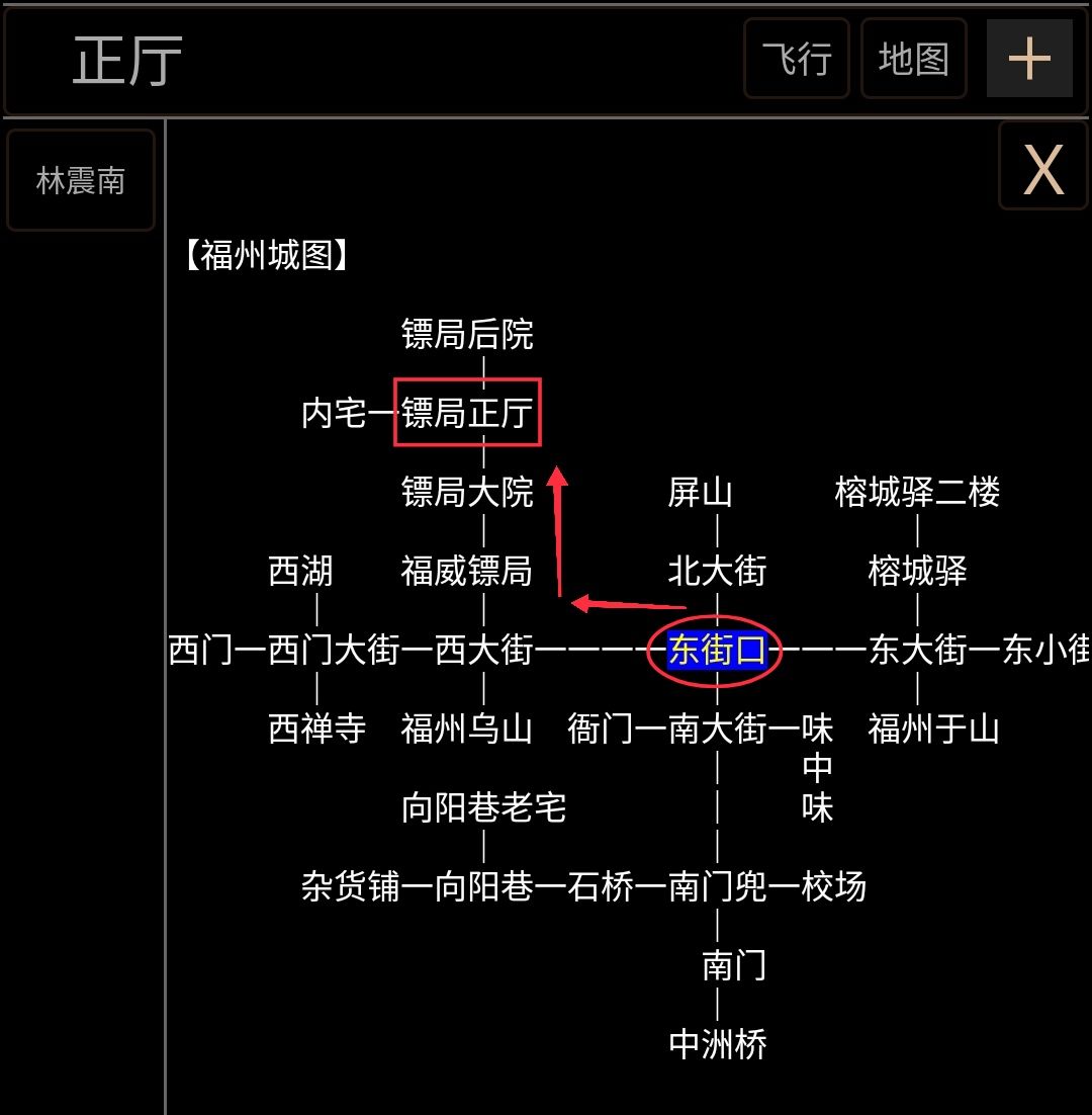 【路线】:飞福州→西大街→福威镖局→镖局大院→镖局正厅