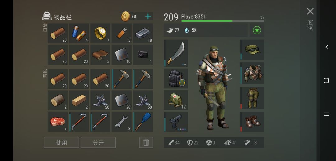 总体收获很差,家很穷,只有一个房间有箱子,房间里右边5个箱子里都是资源类物品,分别为铁,木,布,石,石。左边两个箱子是一些杂货,各种东西。除了列出来的东西,摩托车上还有一套军装。