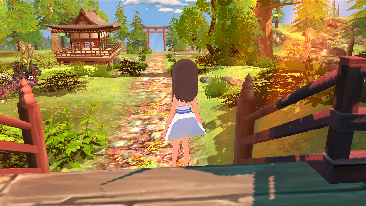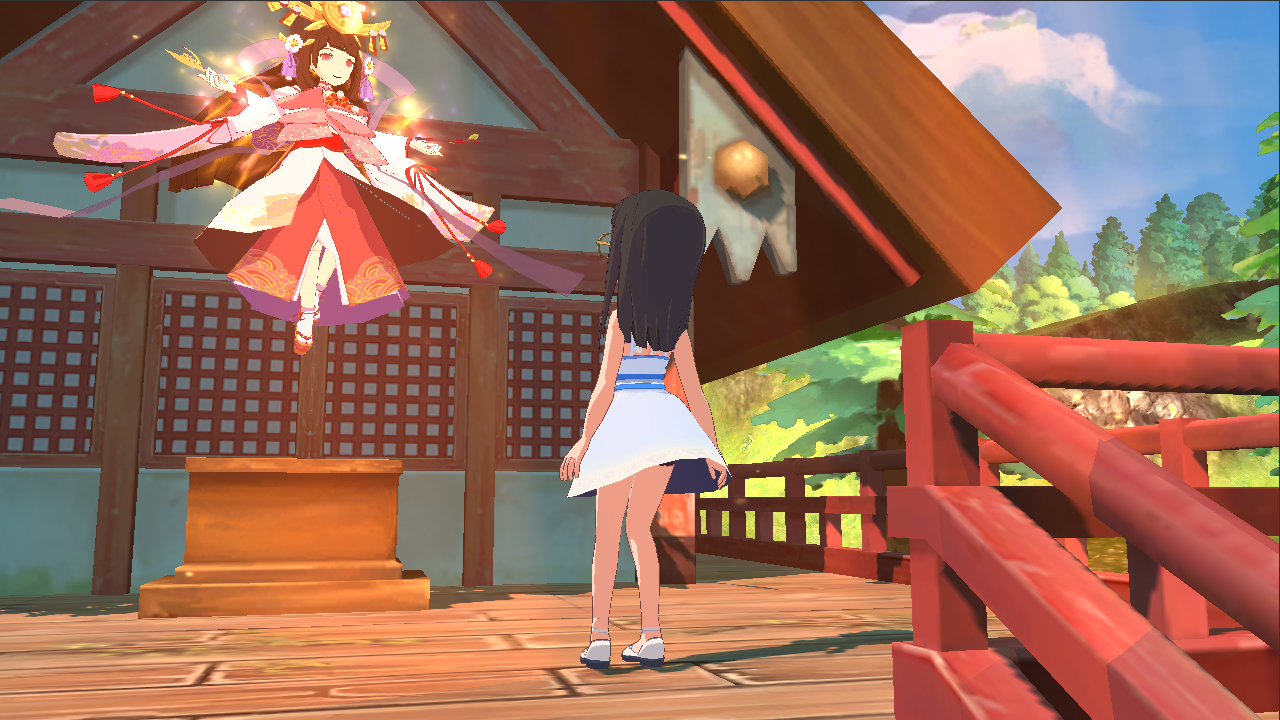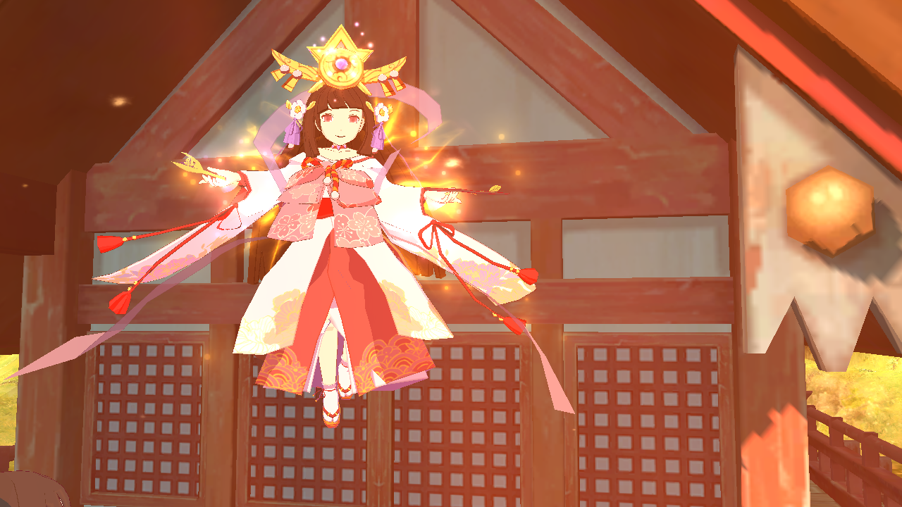御荫神立于拜殿前, 还是那样温和柔润的脸颊,却在月光润色下显出几分肃穆与高贵。她的美貌轻柔得仿佛不足以将人从睡梦中唤醒,抑或是有着催人入梦的魔力,以至于在这夜晚的邂逅中,我恍惚进入了一场梦境。
