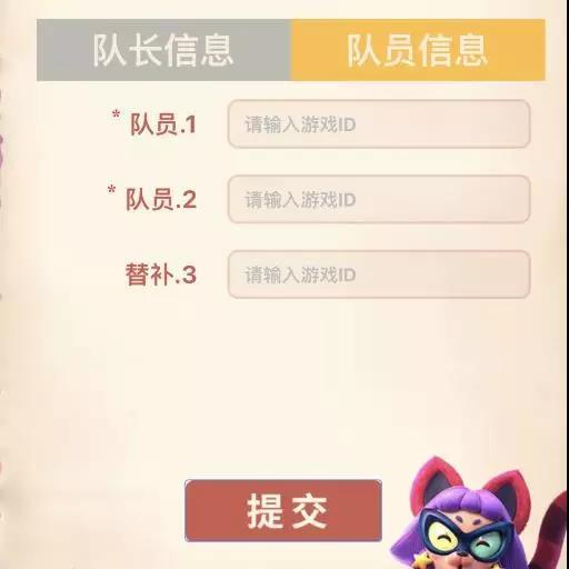 2.点击“队员信息”,填写相应信息,替补为选填项,但是有替补会更安心哦~