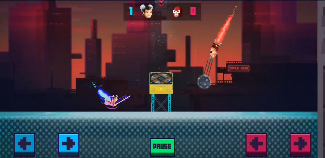 在这款快节奏的像素对战游戏当中,你可以选择和AI对战,也可以和你的小伙伴在同一个屏幕下操控两个小人来进行战斗,短短几秒钟便可分出胜负。